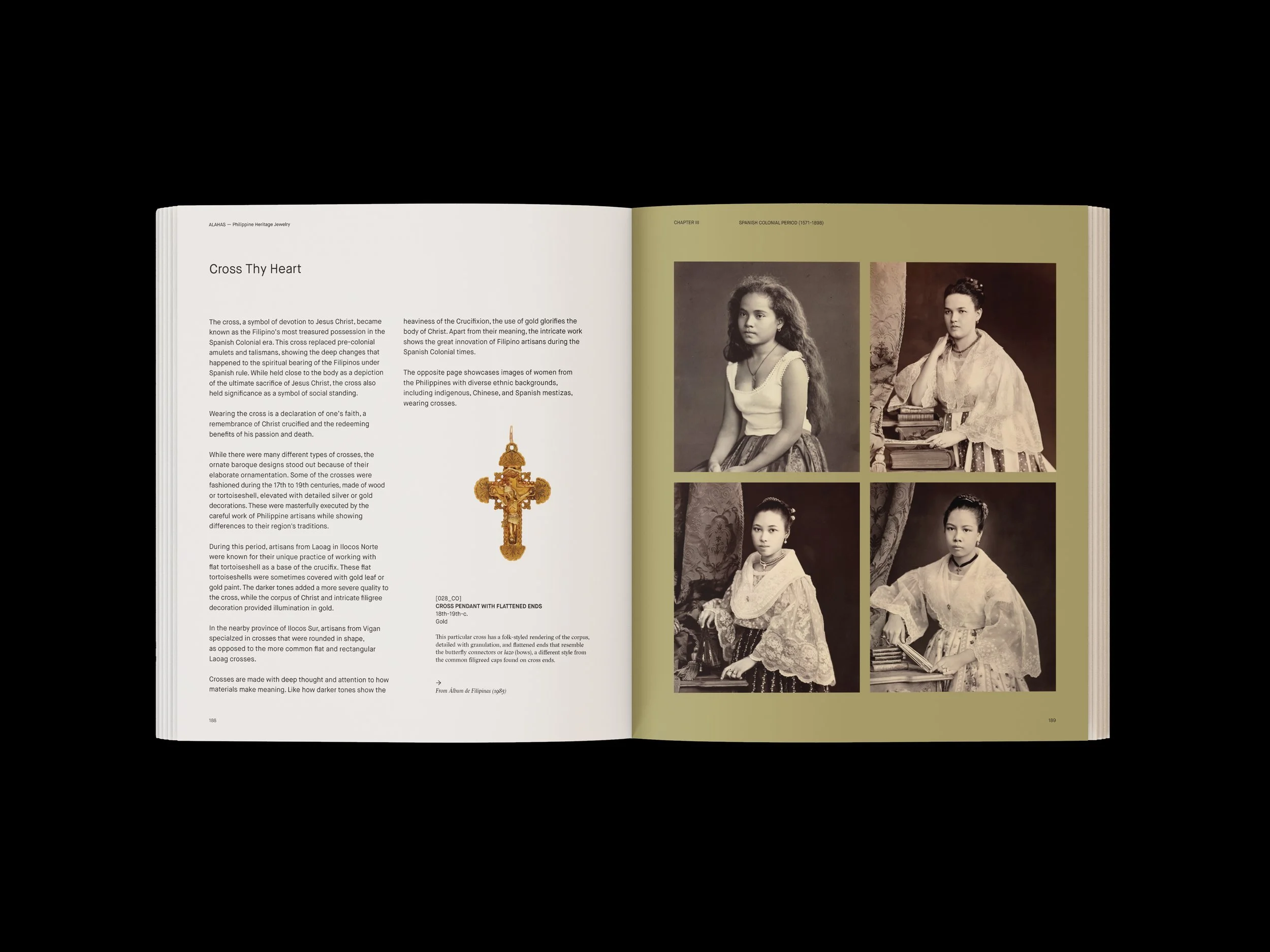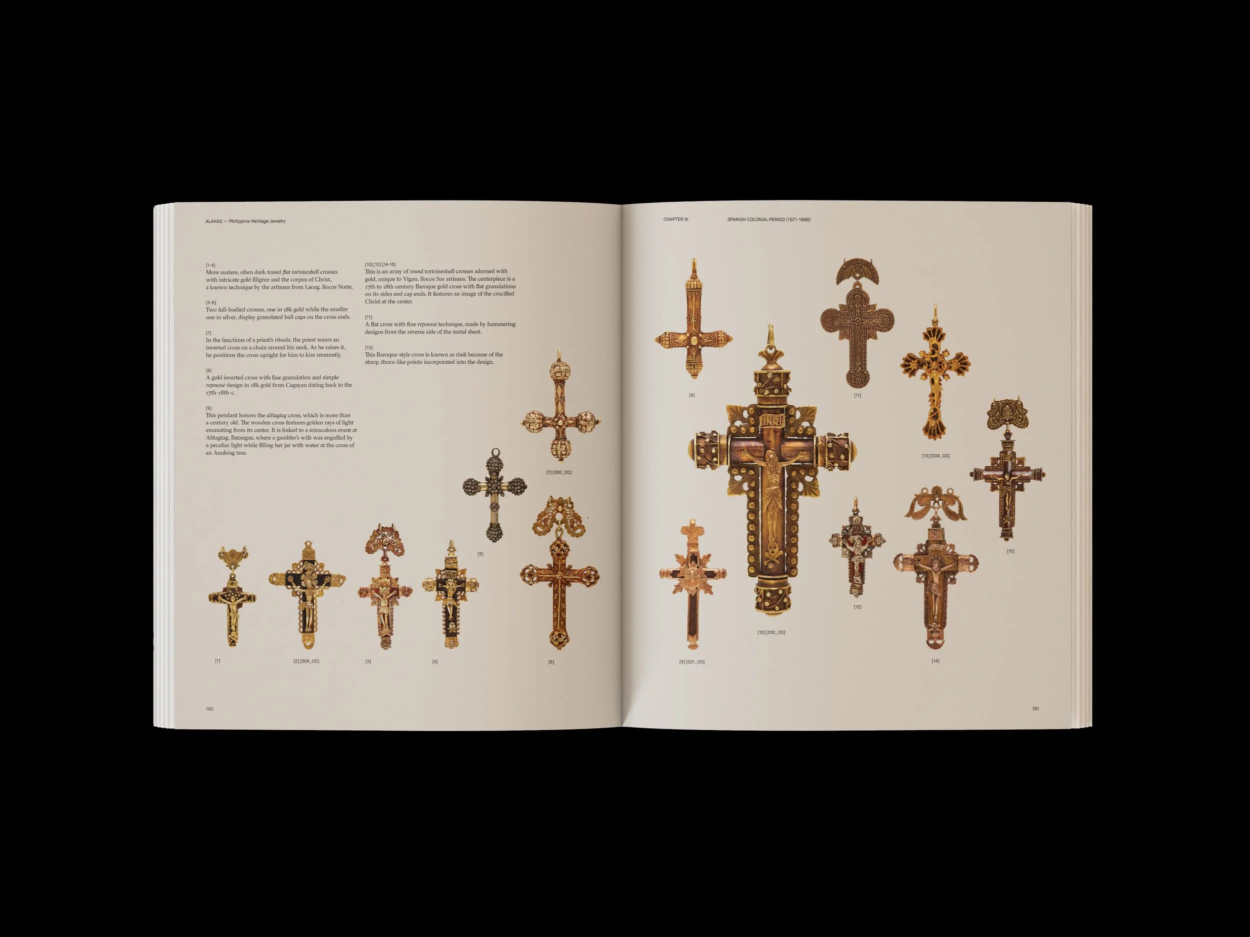 For decades now, Maria Angelica has navigated the waters of Philippine Heritage Jewelry, embarking into thrilling and often uncertain journeys. From collecting off the quaint streets in Iloilo to admiring her trove under the warm light of her living room, she has immersed herself in the vibrant communities of a world known by a few – ultimately venturing to evoke the inherent essence embedded within each precious jewel. What unfolds in ALAHAS: Philippine Heritage Jewelry, is a symphony of essays, as Maria Angelica reflects on her experience with closely-held adornments, compounded with meticulous historical research. —alahasbook.com