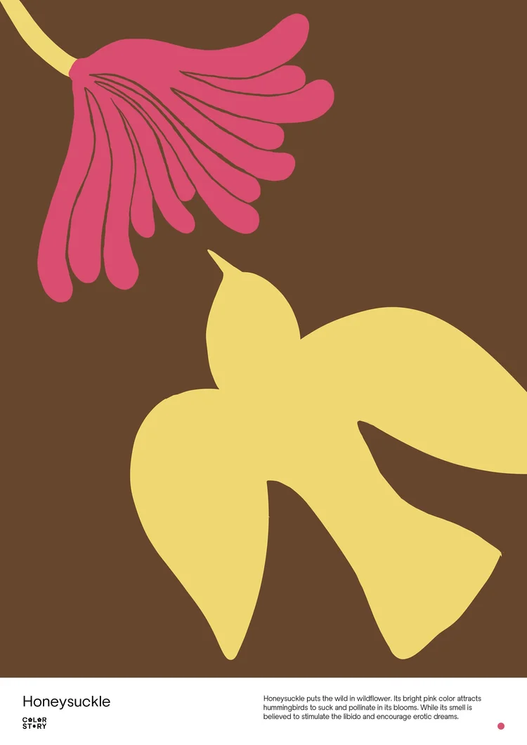 Started in 2019, Color Story is an on-going research and poster project that tells amusing, and at most times, shocking stories on color. In 2022, the project turned 4. I dedicated the research and posters to colors named after flowers, quite simply because 𝘧𝘰𝘶𝘳 sounded like 𝘧𝘭𝘰𝘳, 𝘧𝘭𝘦𝘶𝘳, 𝘧𝘭𝘰𝘳𝘢—all translating to 'flower'. Like all the other series in this project, this edition chronicles a mixed bag of both sweet and twisted stories. Happy 4 years and a big thank you to anyone who’s followed and supported the project since Day 1. Color Story 4ever :)