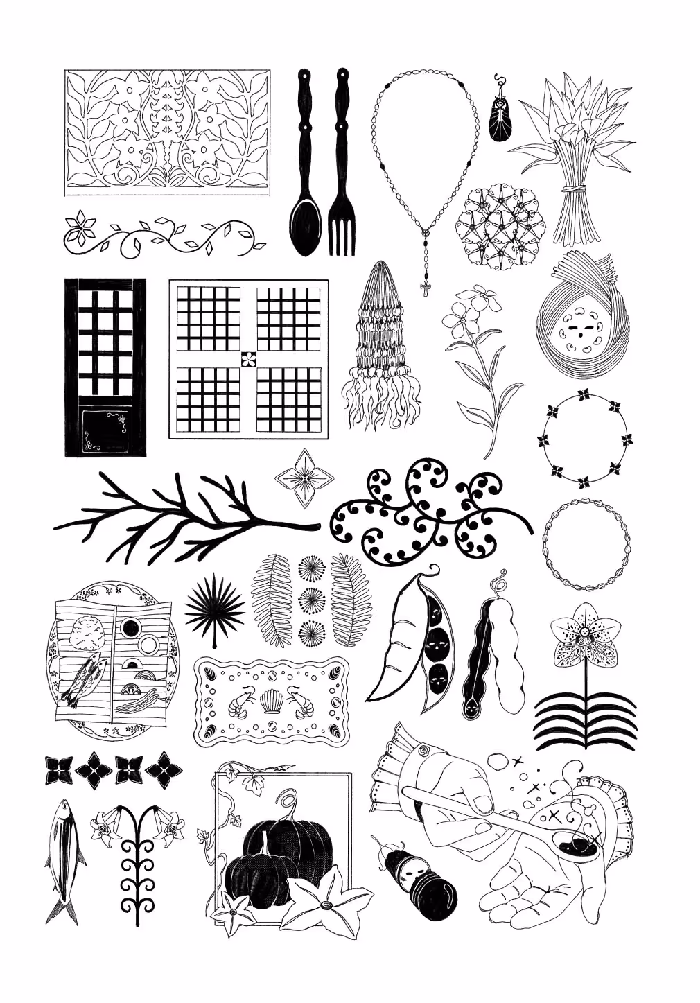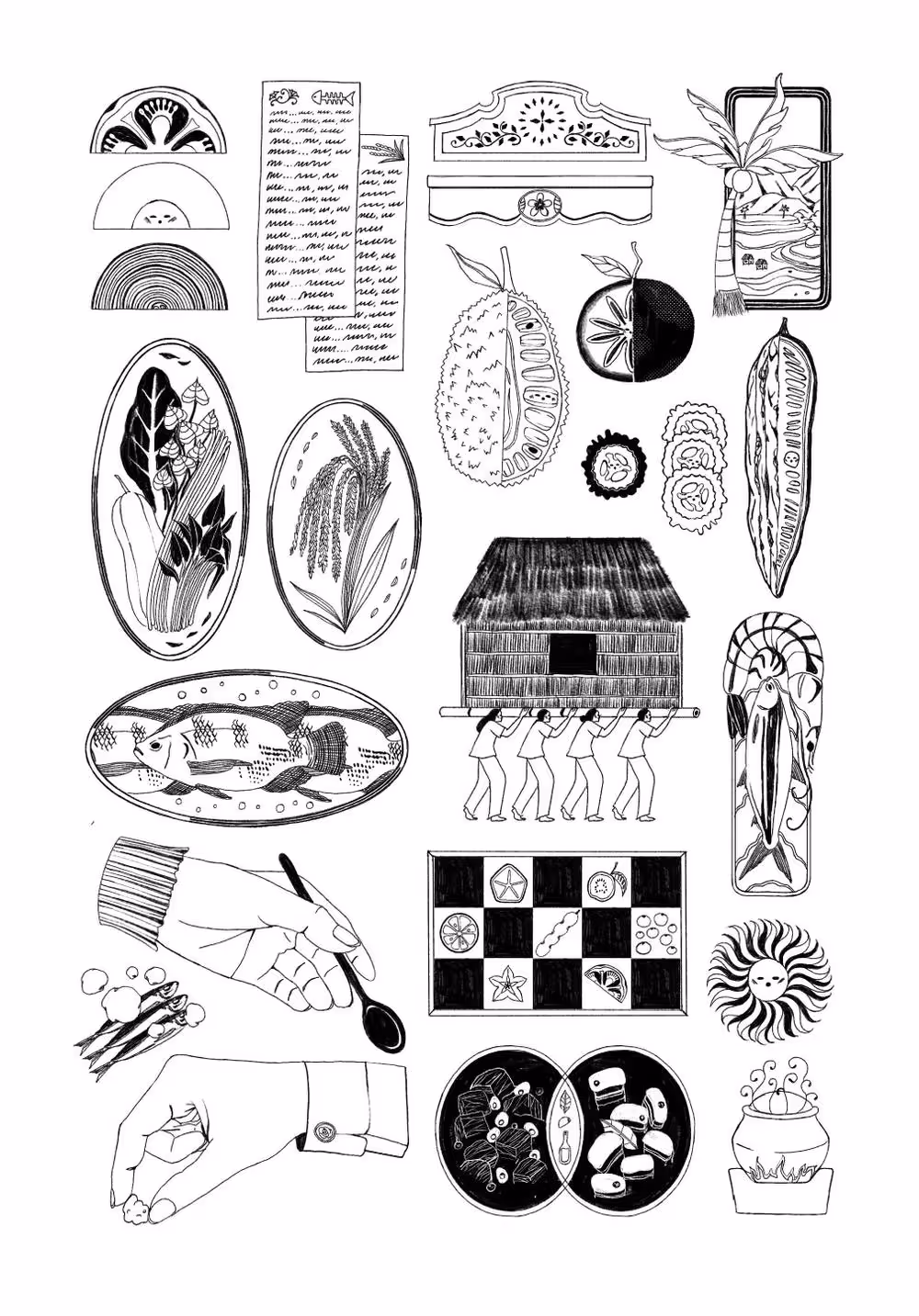 Chapter and flash illustrations for the reprint of Doreen Fernandez’s Sarap, published by Exploding Galaxies.